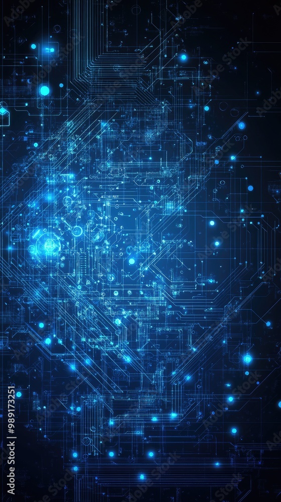 Wall mural : Abstract digital background with glowing blue lights and intricate patterns, ideal for technology an