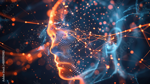 Abstract digital background with glowing connections and lines forming an intricate web of data tranWall mural