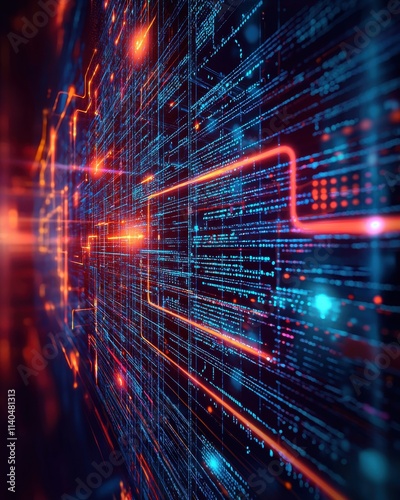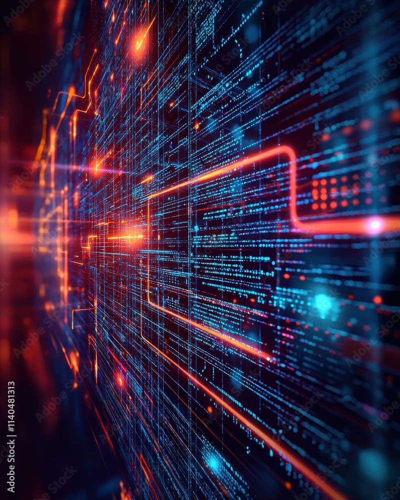 Wall mural : Abstract digital background with glowing lines, circuit patterns, and neon lights representing high-