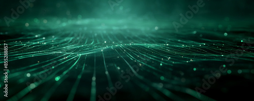 Wall mural : Abstract digital background with glowing lines and dots forming a network, black backdrop with green