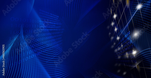 Wall mural abstract digital background with weave line art, big data stream visualization. high speed technolog
