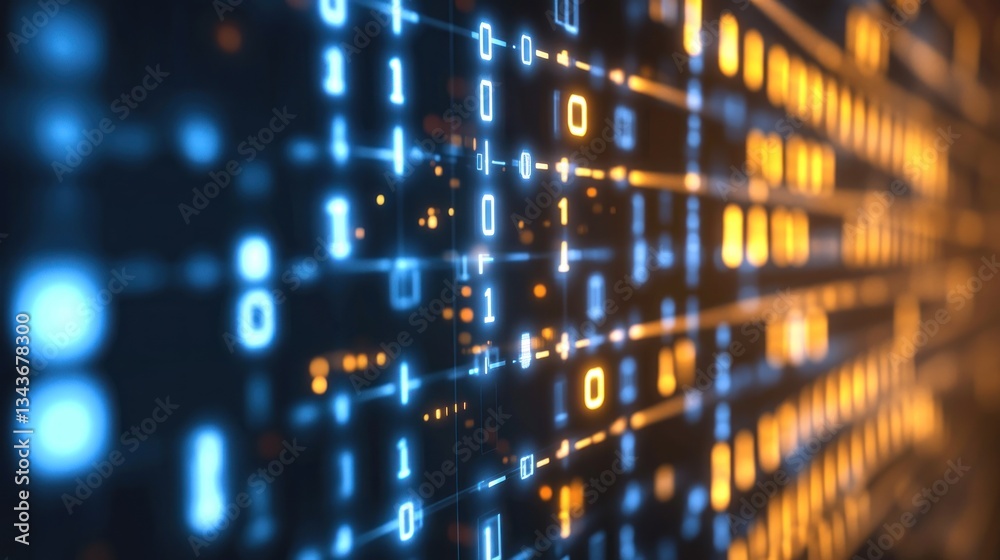 Wall mural abstract digital binary code representation with glowing effects. - Wall murals Wall mural abstract digital binary code representation with glowing effects. - Wall murals