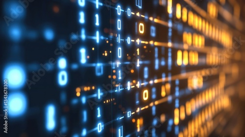 Wall mural : Abstract digital binary code representation with glowing effects -