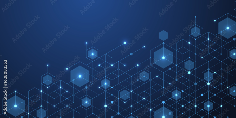 Wall mural abstract digital blockchain cube blocks concept. 3d big data cubes quantum computer technology idea. - Wall murals Wall mural abstract digital blockchain cube blocks concept. 3d big data cubes quantum computer technology idea. - Wall murals
