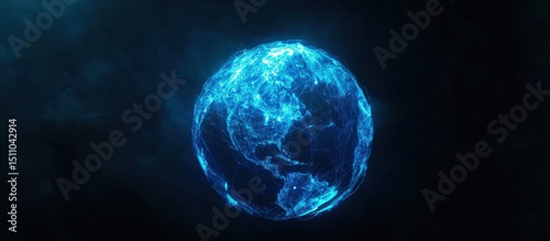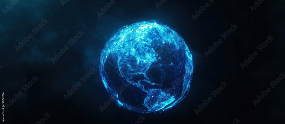 Wall mural abstract digital blue background with a globe made of glowing data connections, representing technol - Wall murals Wall mural abstract digital blue background with a globe made of glowing data connections, representing technol - Wall murals