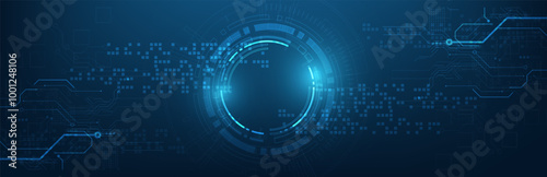 Wall mural abstract digital blue background with a glowing circular interface and circuit patterns, symbolizing