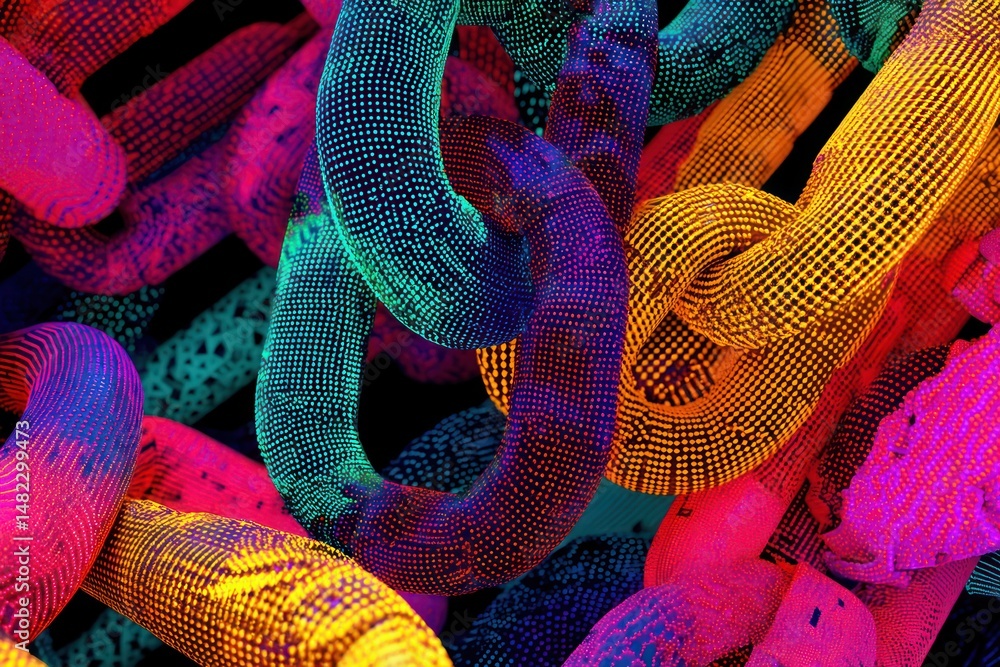 The watermark will not be included on Wall mural.: Abstract digital chains and neon patterns, capturing the essence of advanced futuristic technology -