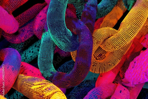 Wall mural : Abstract digital chains and neon patterns, capturing the essence of advanced futuristic technology -