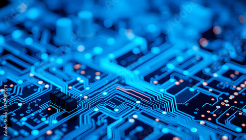 Wall mural abstract digital circuit board on an electric blue technological background. circuit board with conn - Wall murals Wall mural abstract digital circuit board on an electric blue technological background. circuit board with conn - Wall murals