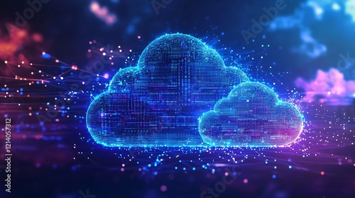Wall mural : Abstract digital cloud computing network data storage futuristic technology concept