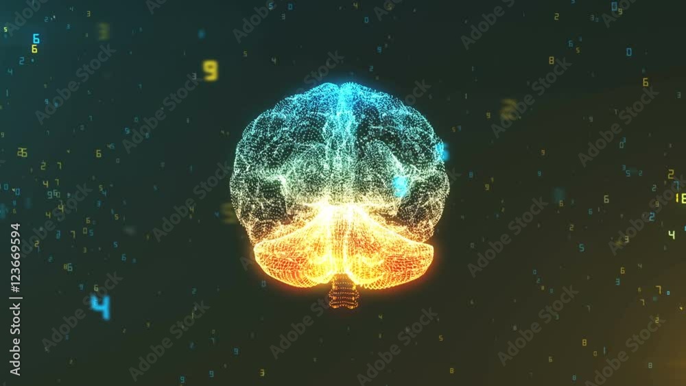 The watermark will not be included on Wall mural.: Abstract digital computer brain surrounded by cloud of numeric data