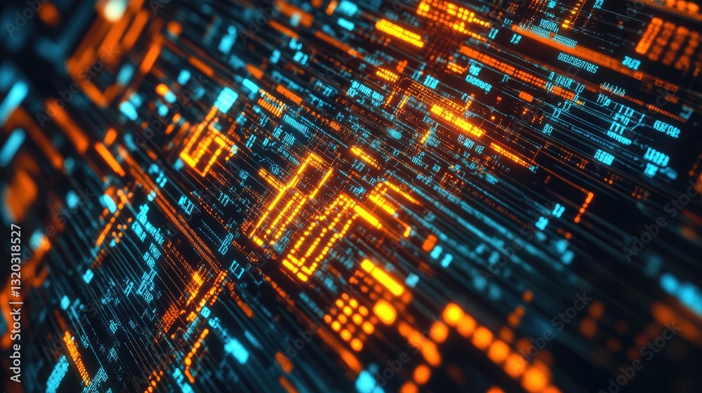 Wall mural abstract digital concept of computer engineering with binary code flowing over circuit patterns. - Wall murals Wall mural abstract digital concept of computer engineering with binary code flowing over circuit patterns. - Wall murals