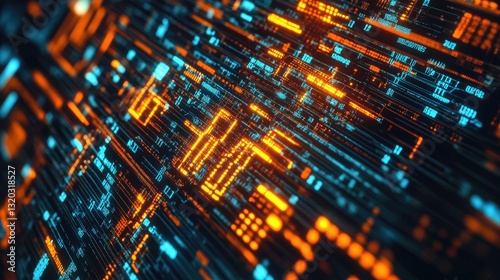 Wall mural abstract digital concept of computer engineering with binary code flowing over circuit patterns.
