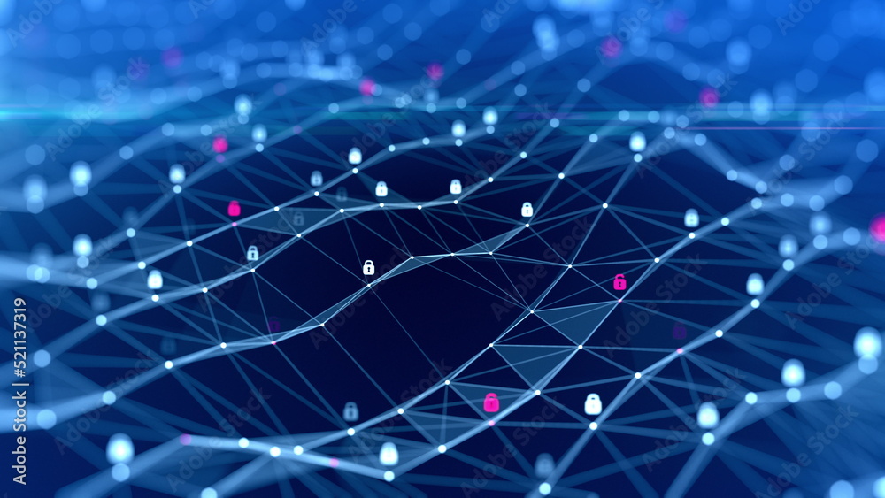 Wall mural abstract digital connection moving dots and lines. internet network technology concept background. n - Wall murals Wall mural abstract digital connection moving dots and lines. internet network technology concept background. n - Wall murals