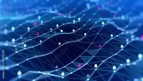 The watermark will not be included on Wall mural.: Abstract digital connection moving dots and lines - internet network technology concept background - n