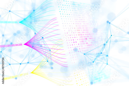 Wall mural abstract digital connections with binary code on a white and blue background, concept of network and - Wall murals Wall mural abstract digital connections with binary code on a white and blue background, concept of network and - Wall murals
