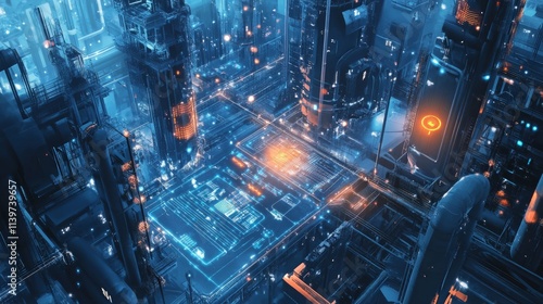 Wall mural : Abstract digital cybersecurity interface with neon elements