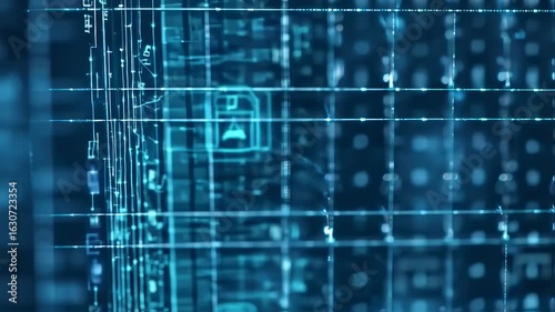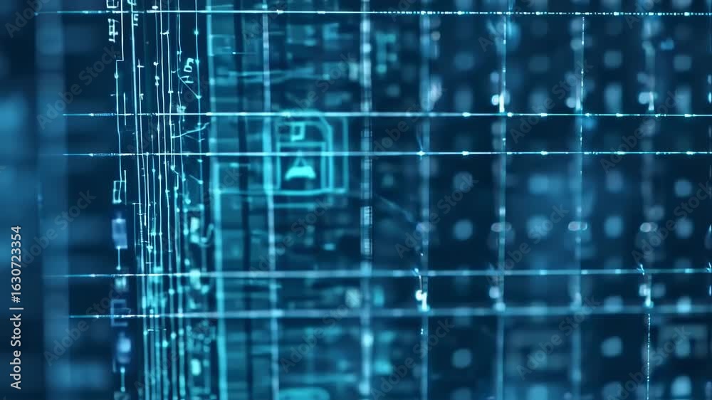 Wall mural : Abstract digital data flow: futuristic network connection with glowing lines and nodes