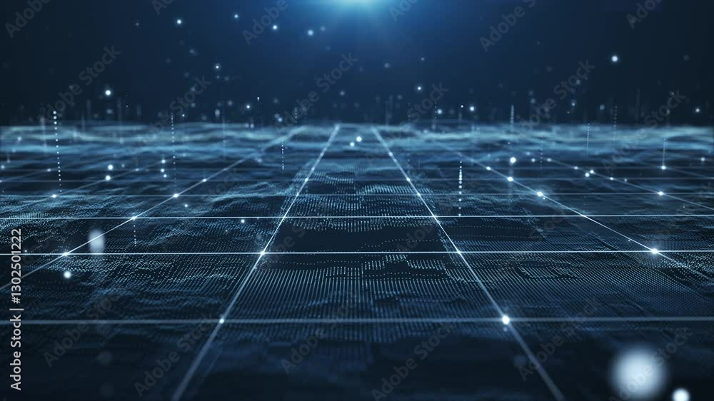 Wall mural abstract digital data landscape with glowing particles and dynamic lines on a dark background, 3d an