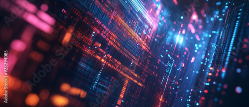 Wall mural abstract digital data network with red and blue lights - Wall murals Wall mural abstract digital data network with red and blue lights - Wall murals