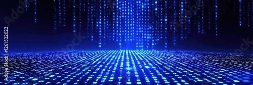 Wall mural abstract digital data stream falling onto a glowing grid.