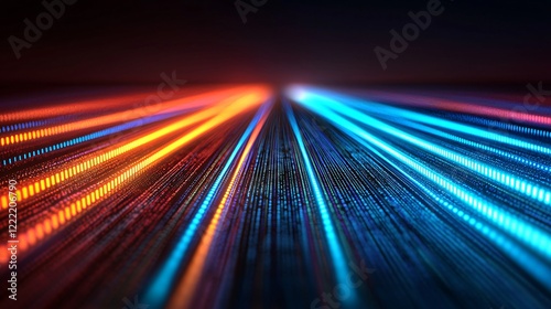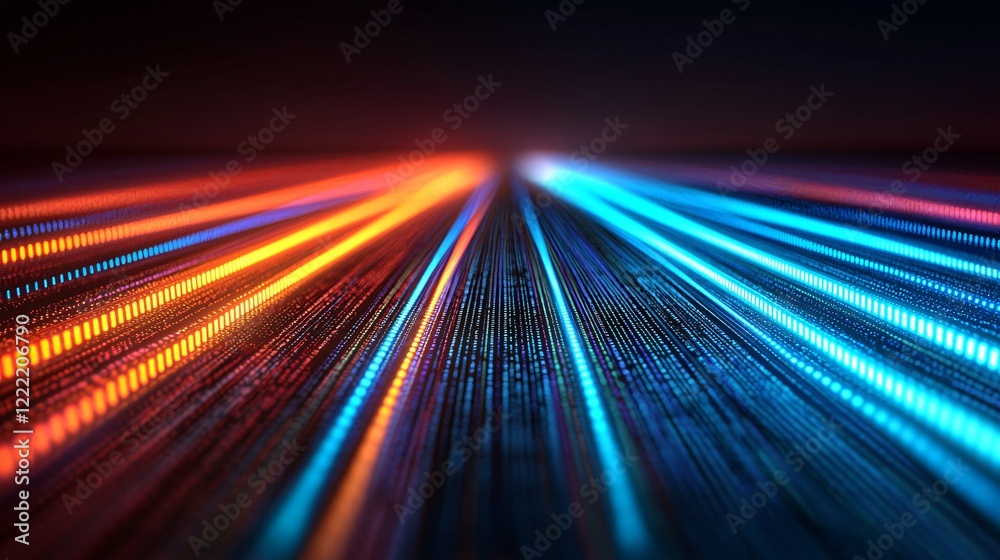 Wall mural : Abstract digital data stream futuristic technology background with glowing lines and binary code