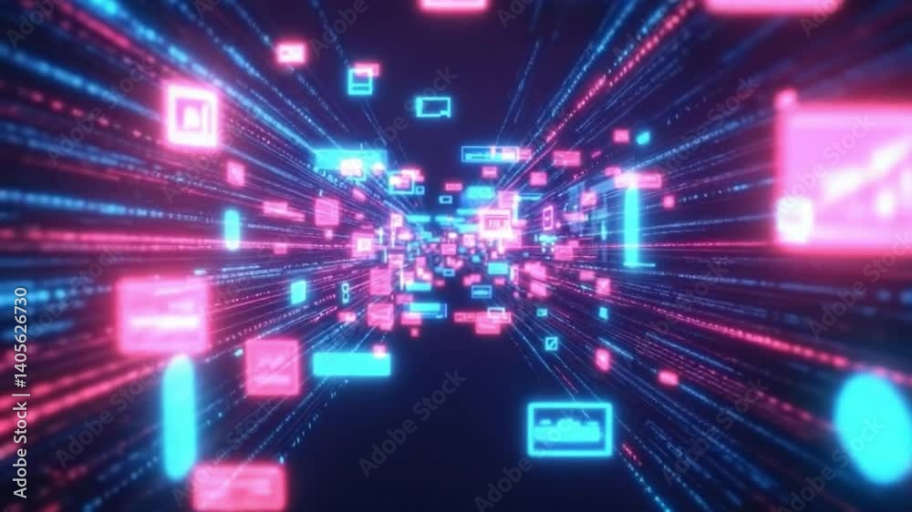 Wall mural : Abstract digital data stream with colourful graphics and glowing lines representing technology and c
