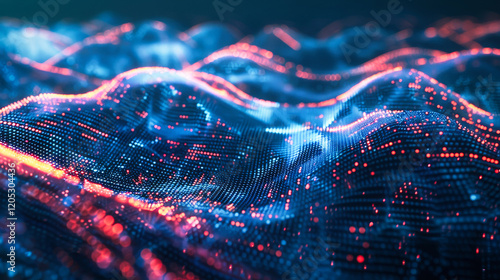 The watermark will not be included on Wall mural.: Abstract digital data stream with glowing lines on dark blue background