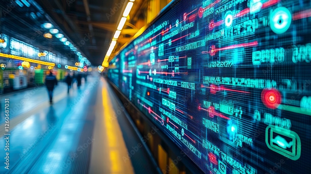 Wall mural abstract digital data stream: futuristic technology and network communication