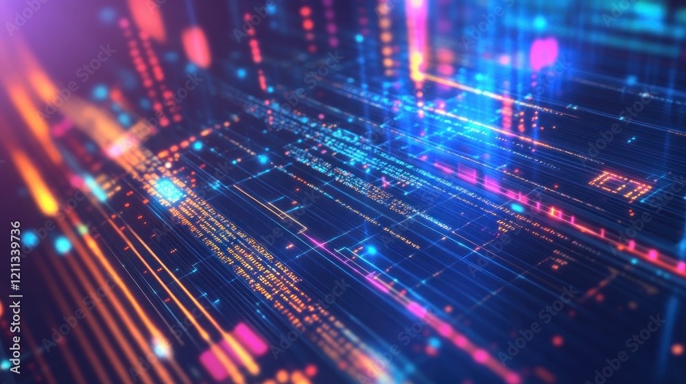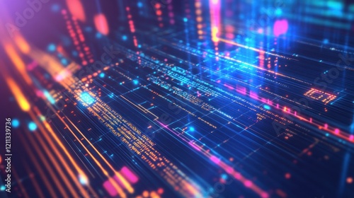 Wall mural : Abstract digital data stream: neon hues and dynamic code