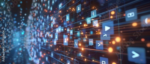 The watermark will not be included on Wall mural.: Abstract digital data streams weave a mesmerizing tapestry of light and connections, showcasing high