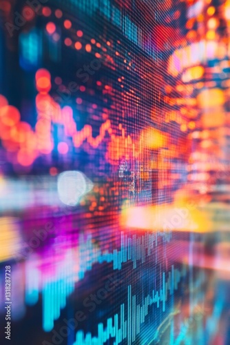 Wall mural : Abstract digital data visualization with colorful patterns and dynamic graphs in modern technology