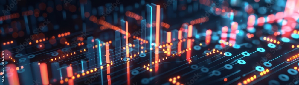 The watermark will not be included on Wall mural.: Abstract digital data visualization with red and blue bars