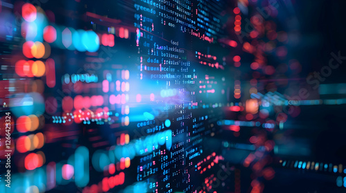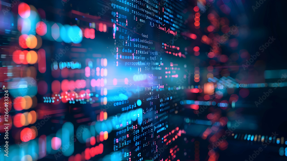 Wall mural : Abstract digital data visualization with vibrant lights and code in motion