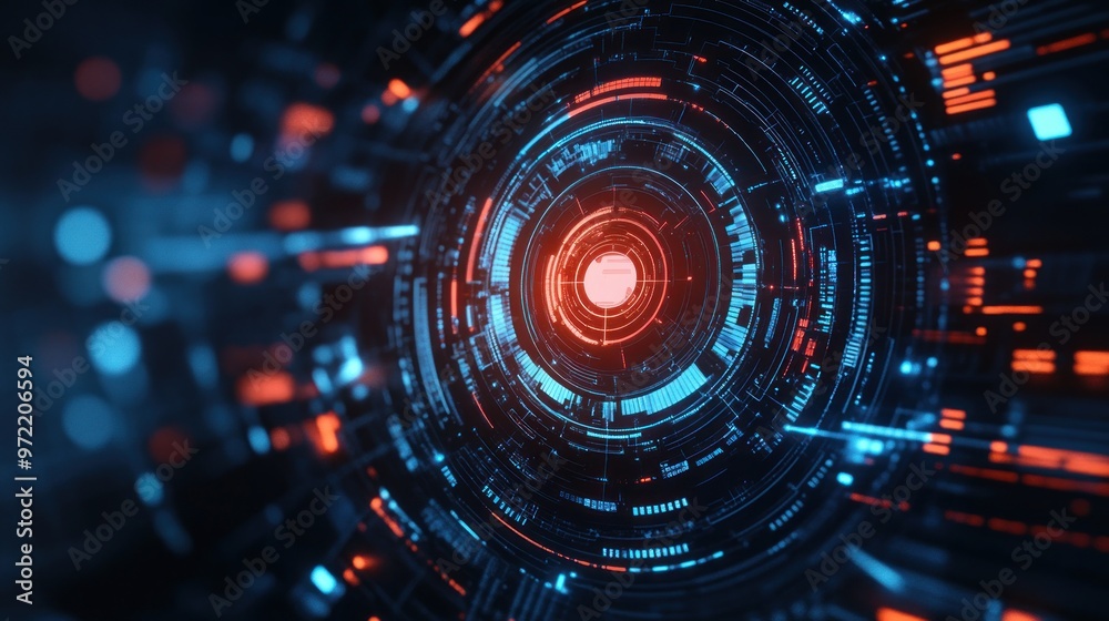 Wall mural abstract digital design with glowing circular patterns and vibrant colors. - Wall murals Wall mural abstract digital design with glowing circular patterns and vibrant colors. - Wall murals