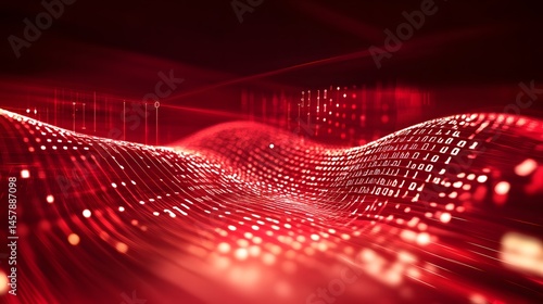 The watermark will not be included on Wall mural.: Abstract digital design with vibrant red tones and data streams -