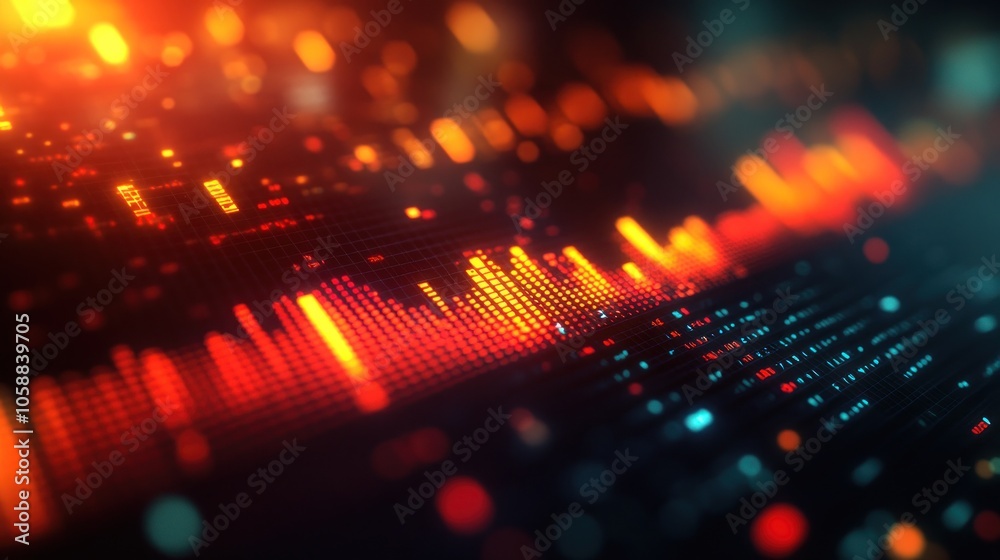 Wall mural abstract digital equalizer with glowing lines and bokeh. - Wall murals Wall mural abstract digital equalizer with glowing lines and bokeh. - Wall murals