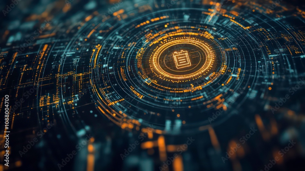 Wall mural : Abstract digital futuristic interface with a glowing checklist icon in the center -
