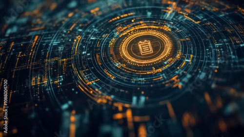 Wall mural abstract digital futuristic interface with a glowing checklist icon in the center. - Wall murals Wall mural abstract digital futuristic interface with a glowing checklist icon in the center. - Wall murals