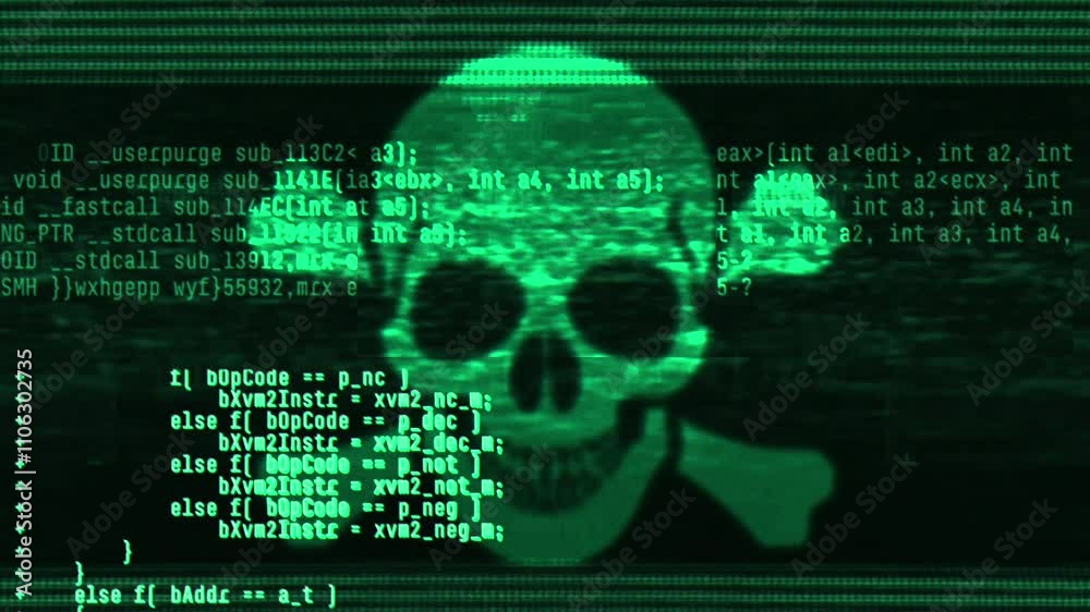 Abstract digital glitch effect with skull - noise looped background for hacked mobile phone screen - eWall mural