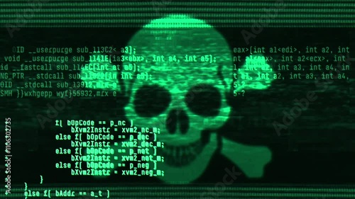 The watermark will not be included on Wall mural.: Abstract digital glitch effect with skull - noise looped background for hacked mobile phone screen - e