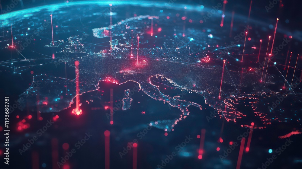 Wall mural : Abstract digital globe with glowing points and lines for a global network concept