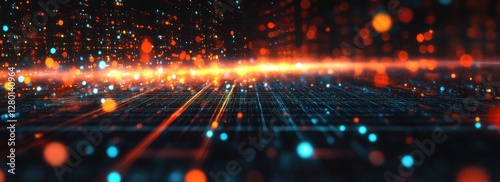 Wall mural : Abstract digital grid with glowing particles and lines -