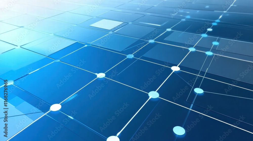 Wall mural abstract digital grid with interconnected nodes and squares in blue tones. - Wall murals Wall mural abstract digital grid with interconnected nodes and squares in blue tones. - Wall murals