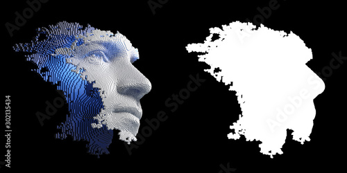 The watermark will not be included on Wall mural.: Abstract digital human face - artificial intelligence concept of big data or cyber security - 3d illus