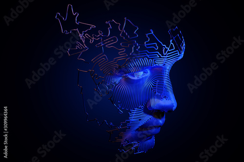 Wall mural : Abstract digital human face - artificial intelligence concept of big data or cyber security - 3d illus