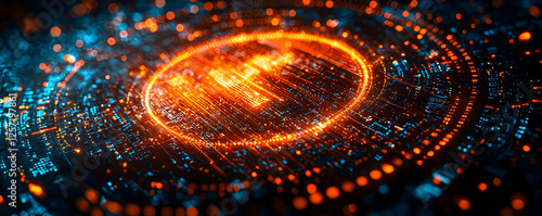 Wall mural : Abstract digital illustration of glowing circuit patterns and shapes