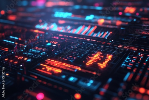 The watermark will not be included on Wall mural.: Abstract digital interface with glowing lines and data -