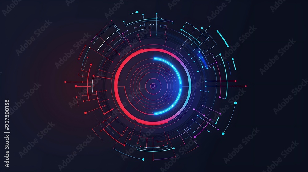 The watermark will not be included on Wall mural.: Abstract digital interface with neon colors and circular design, representing innovation and technol