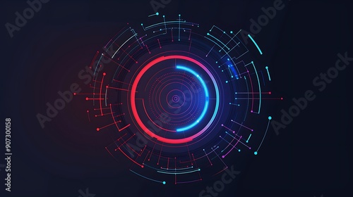 Wall mural : Abstract digital interface with neon colors and circular design, representing innovation and technol